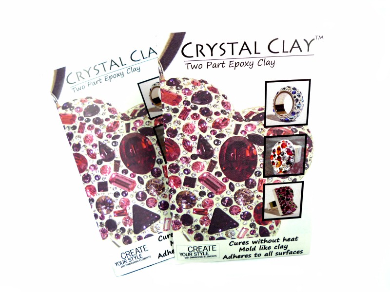 Crystal Clay leire brukes sammen med strass, o.l. Lag anheng, ringer. 2 like deler blandes godt sammen.