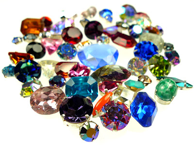 Godt gjemt...disse vakre krystallene fortjener litt spotlight. Vi har ganske mange vintage stener, både med og uten metall rundt. Ikke brukte, men gamle. Vanskelig å eksponere så små ting blant alt det andre, sikker på at mange faste kunder ikke vet de fins. Moten er nå slik at det brukes en del av den typen, da vet dere det, vi har mange fine. Priser fra 1,- opp til 15,- for fine store.